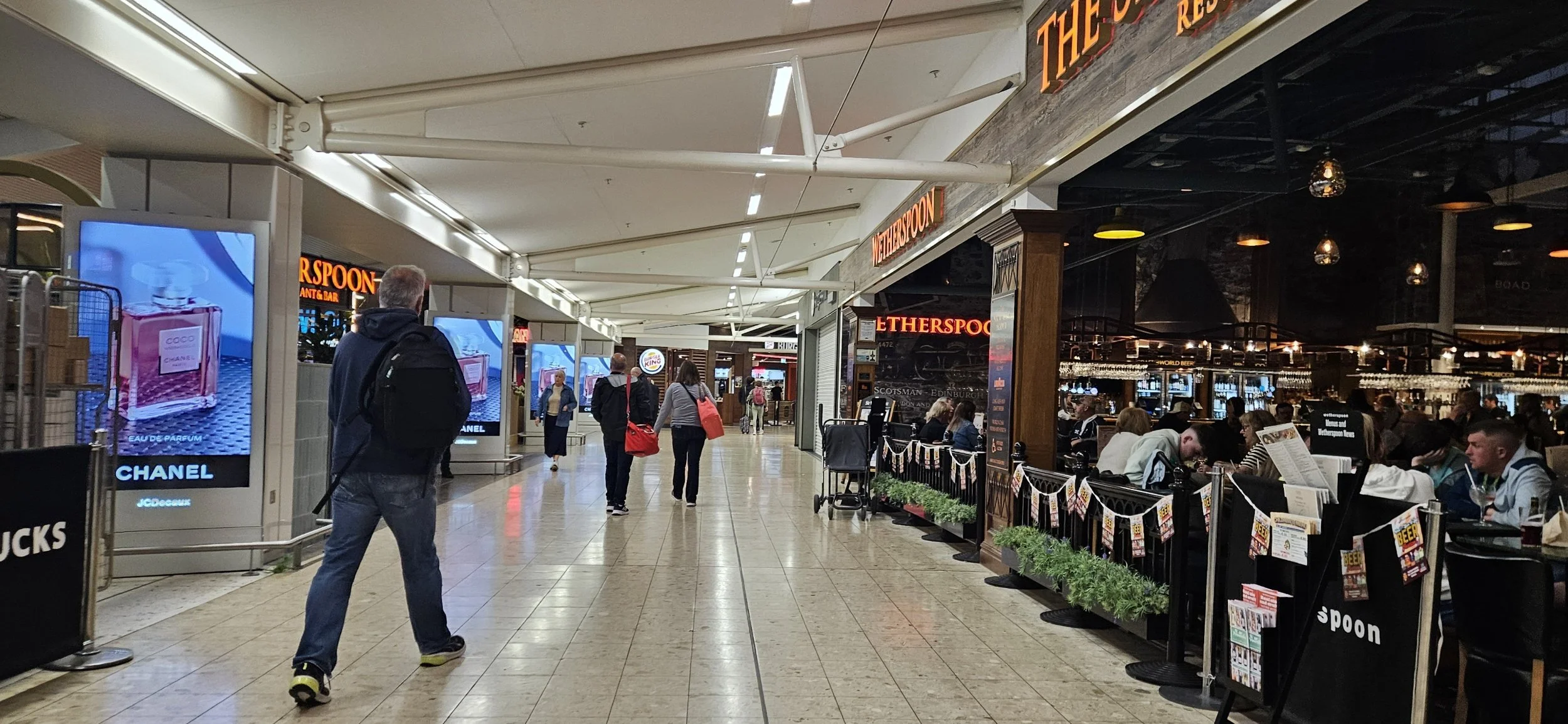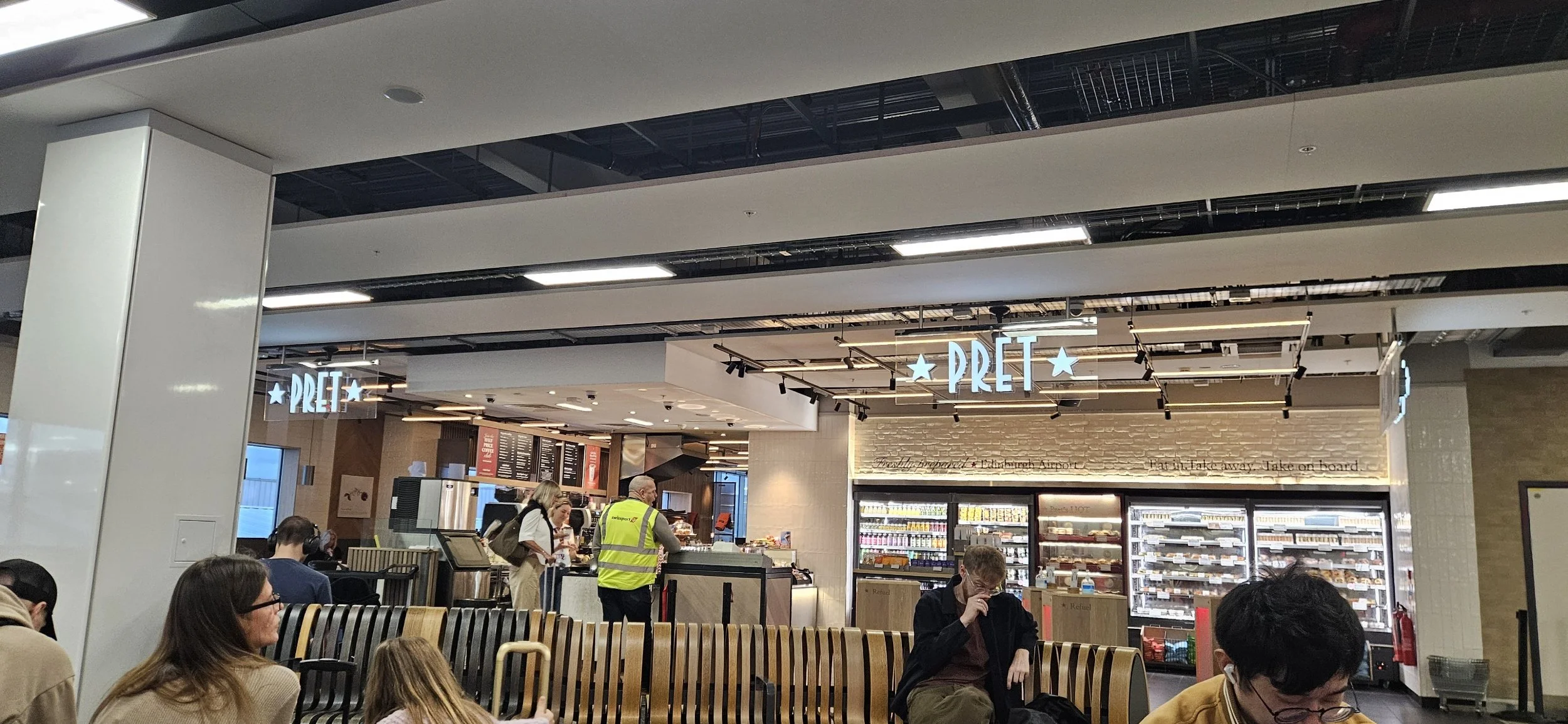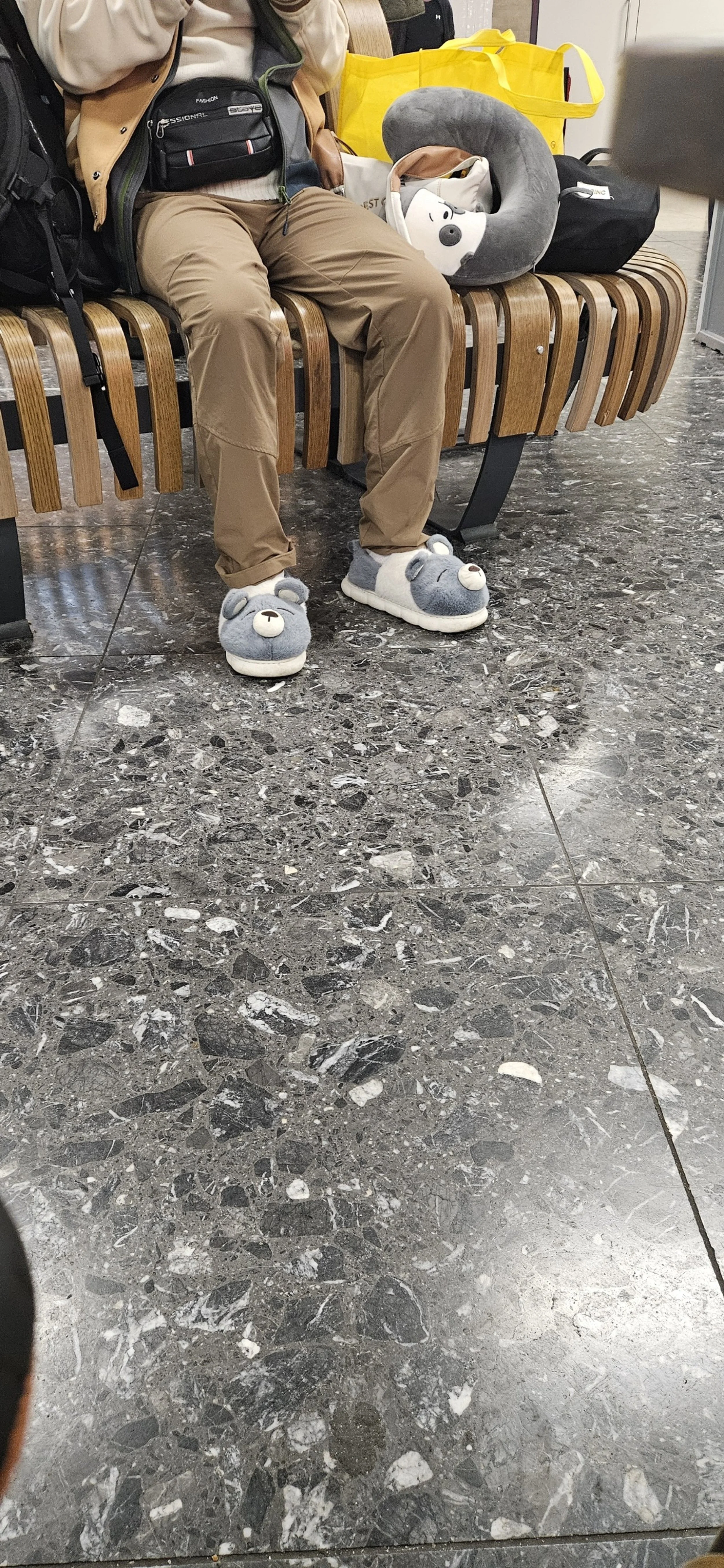 Very nice airport. They make you walk through the duty free section on the way to the gates to try and get you for any last minute purchases. This guy has matching neck rest and travel slippers? I didn't even know this is a thing.
