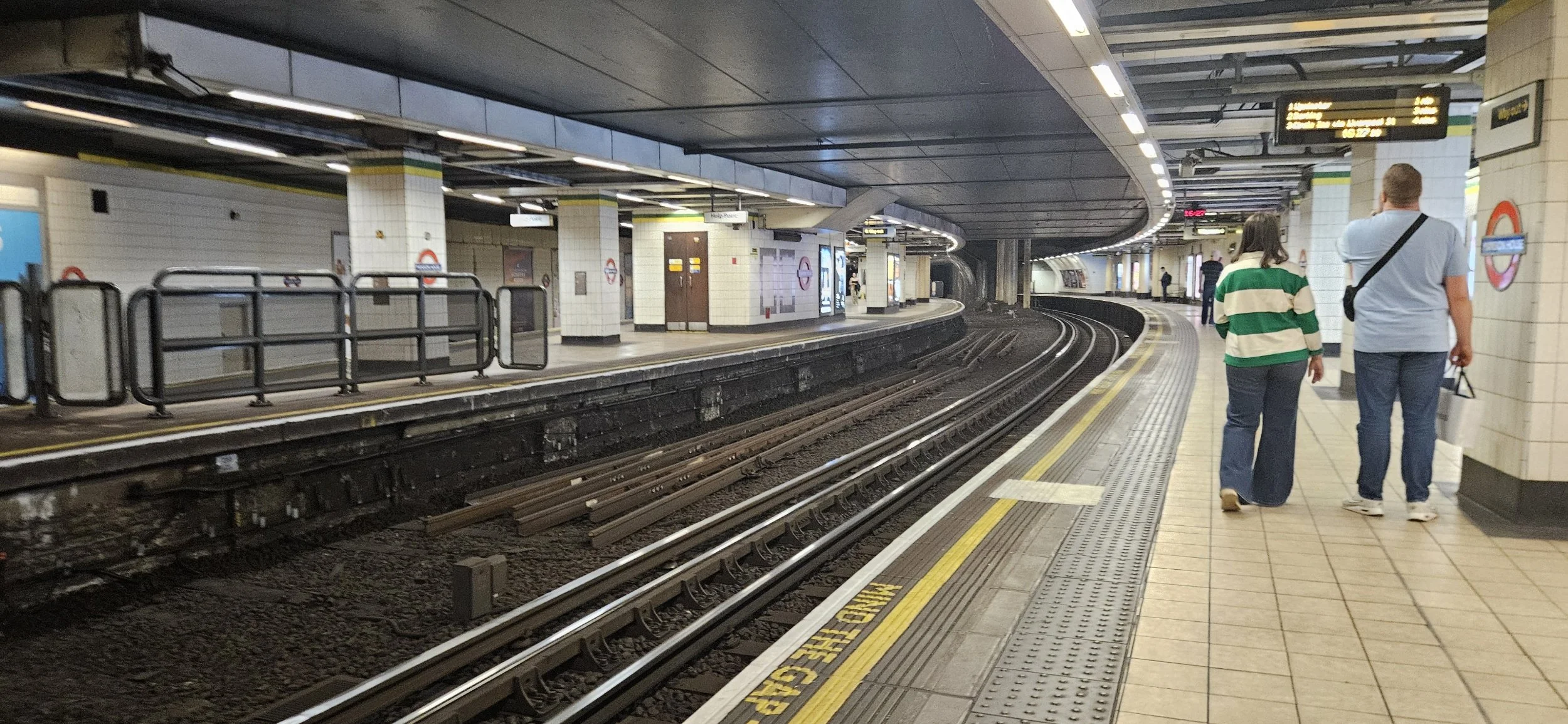 I got off at the next station and immediately looked to see which direction I need to go to get the connecting metro. The connecting train used the same platform. I tried to figure out if I was on the right side. I looked across and saw that I need to be on the other side. I grabbed my suitcase and worked my way through the crowd to the stairs. I carried my suitcase up the stairs and down the other side to find the metro there with the doors about to close. I jumped on and parked my self out of the way and then panic fell over me. Over the intercom they announced “Next stop Tower Hill”. I didn’t think to check which metro I jumped on. I was heading right back to where I came from. I took a deep breath and looked at the time. I had forty-five minutes to get to my train.