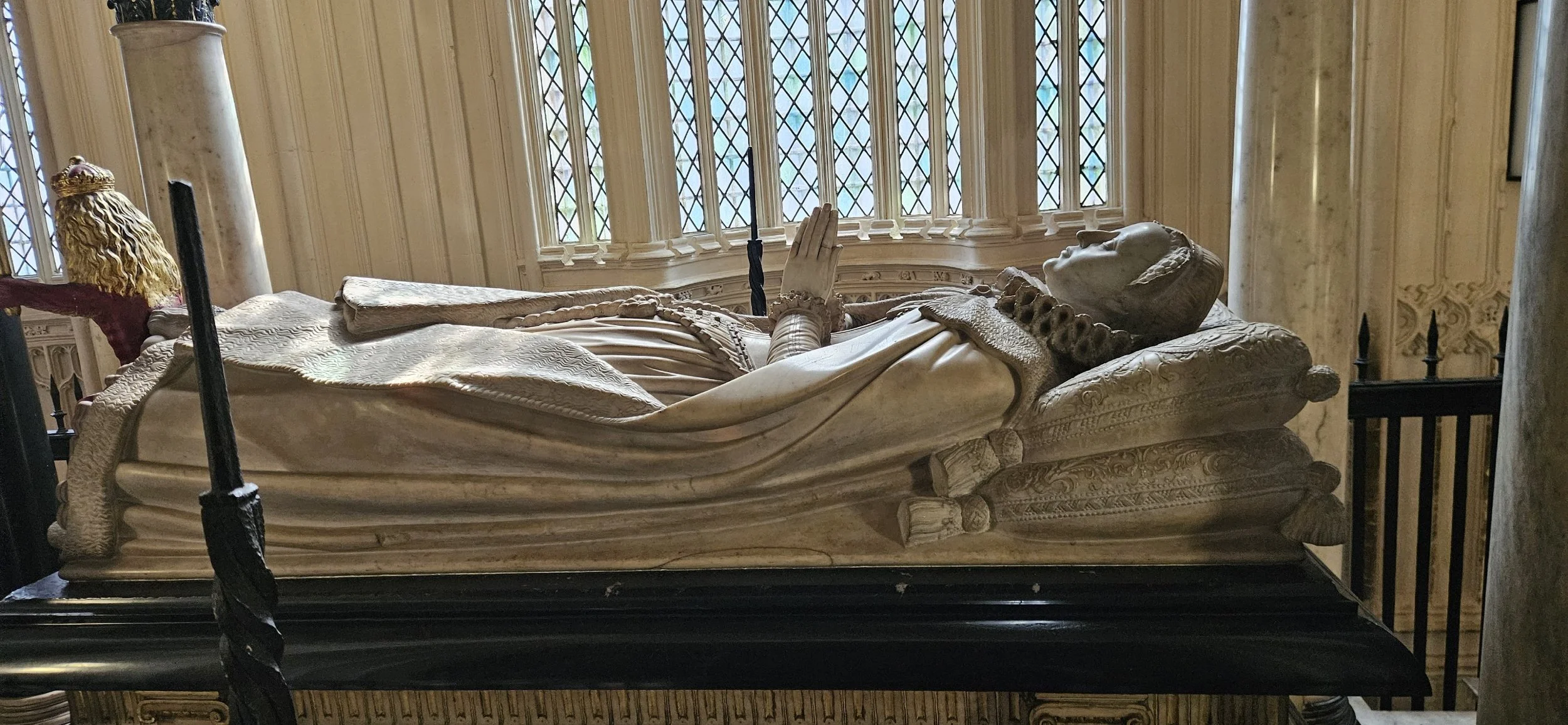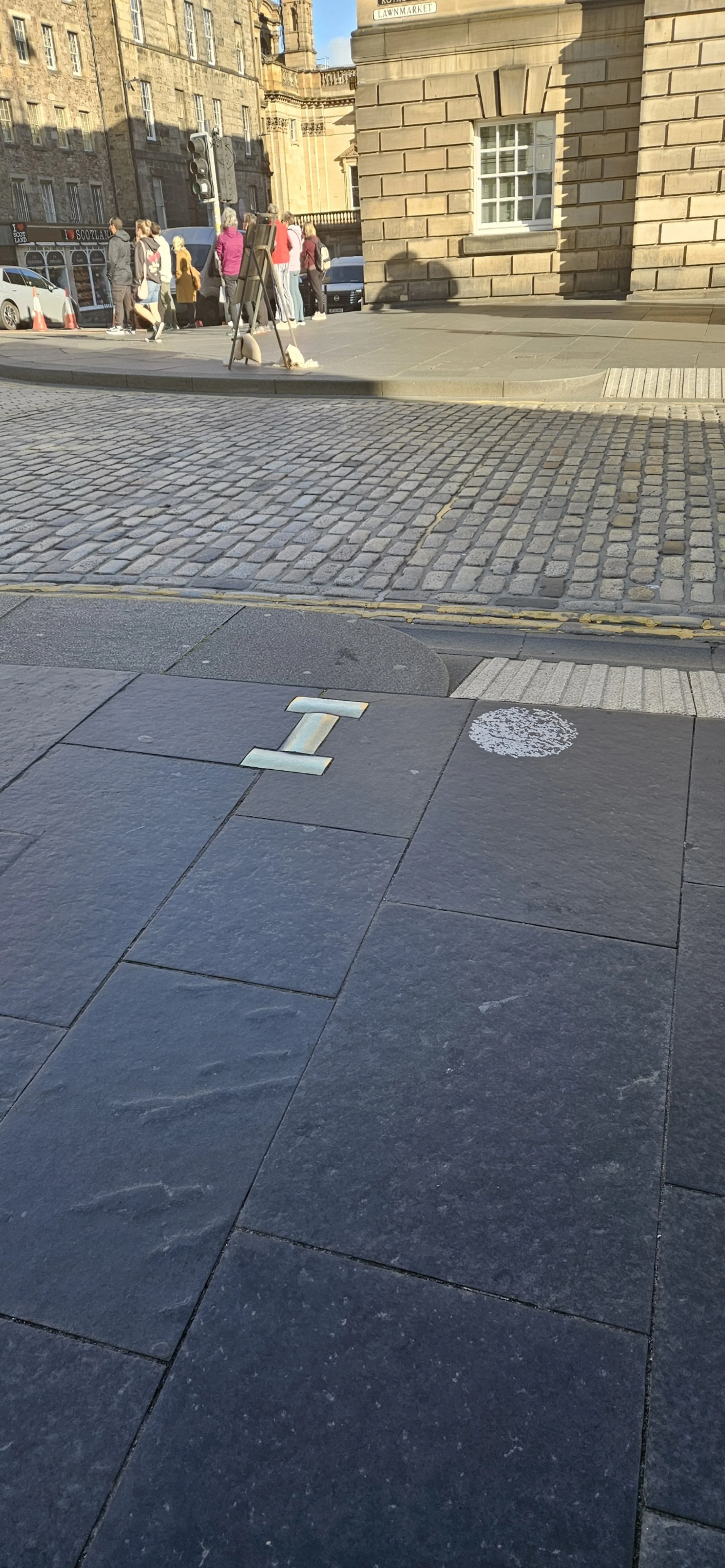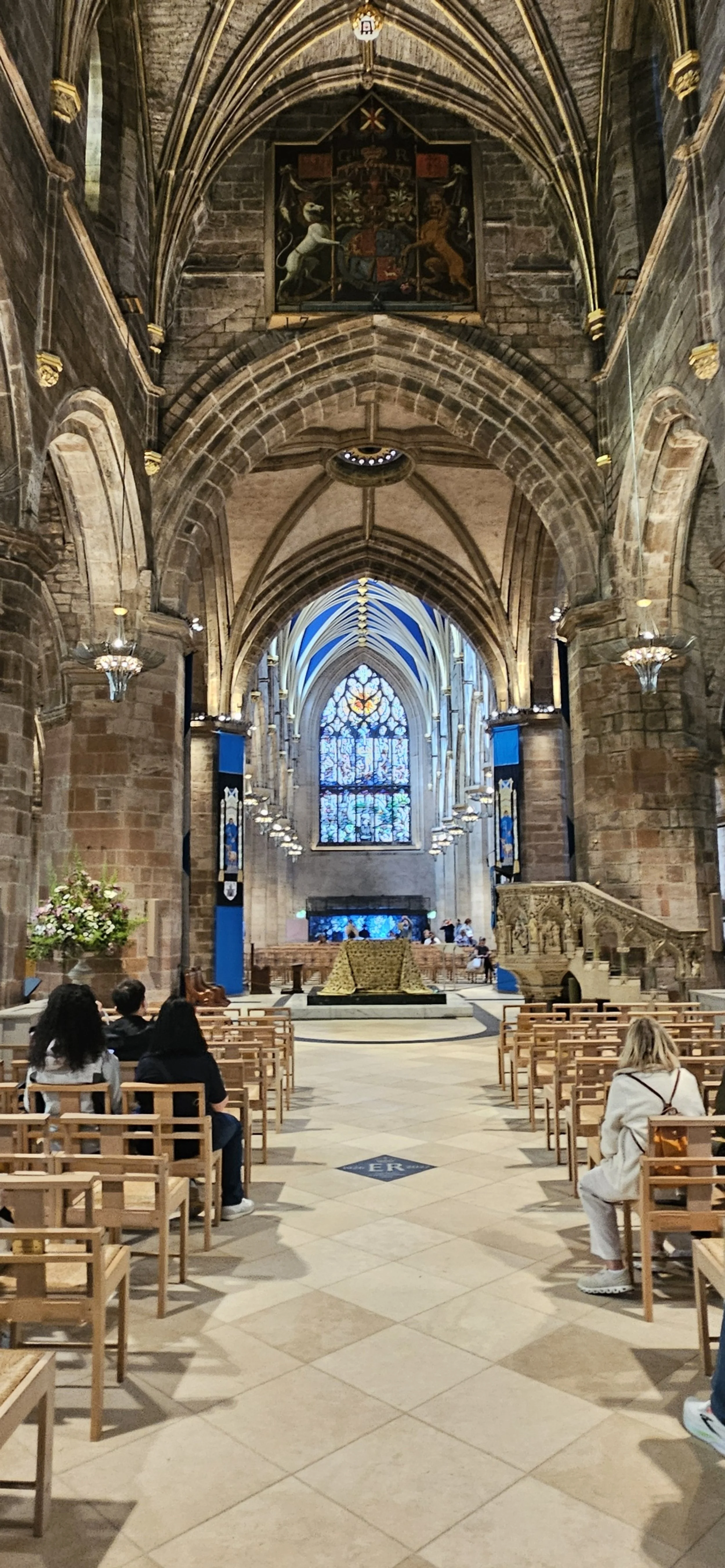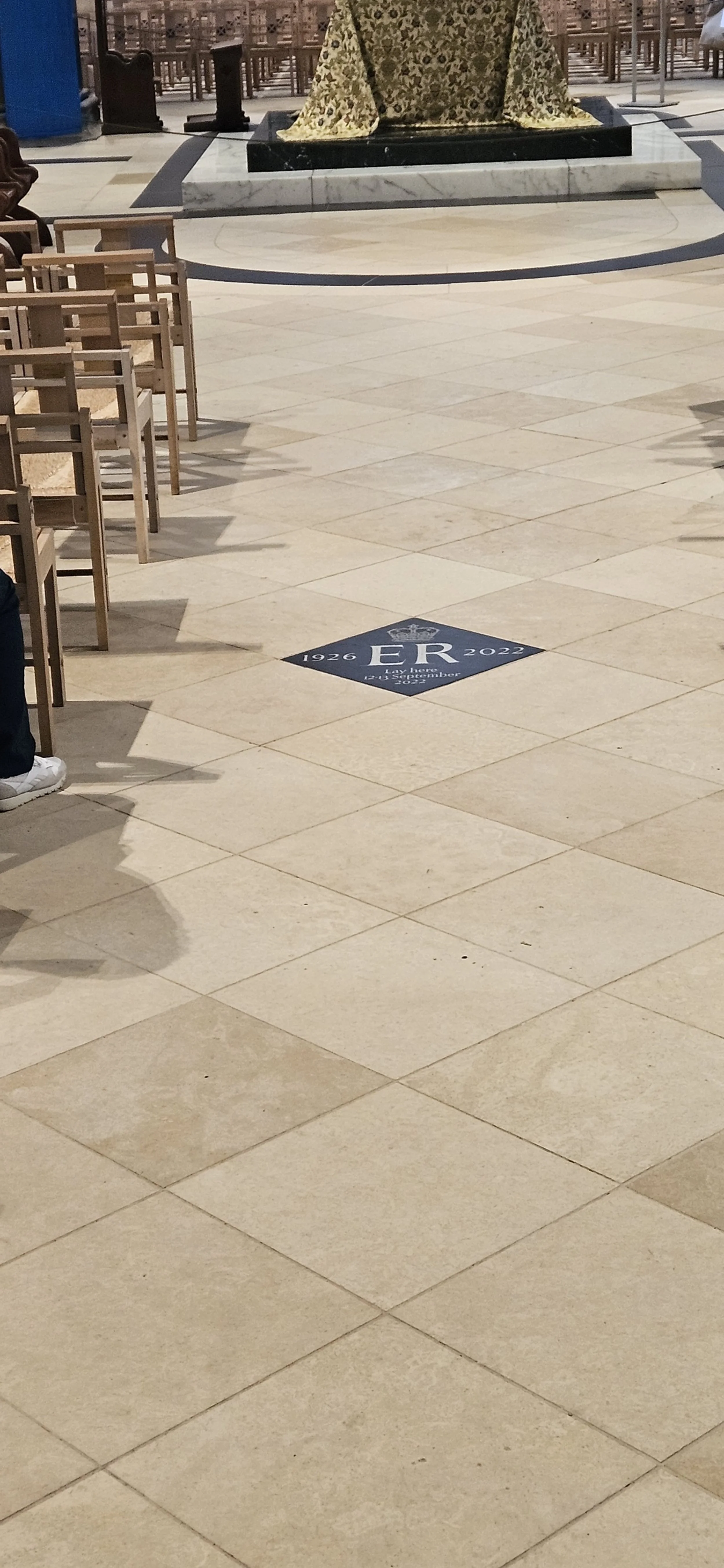 This is the Church that Queen Elizabeth was laid in state after her death for the subjects of Scotland to give their last respects. The tile marks the location where the casket was placed.