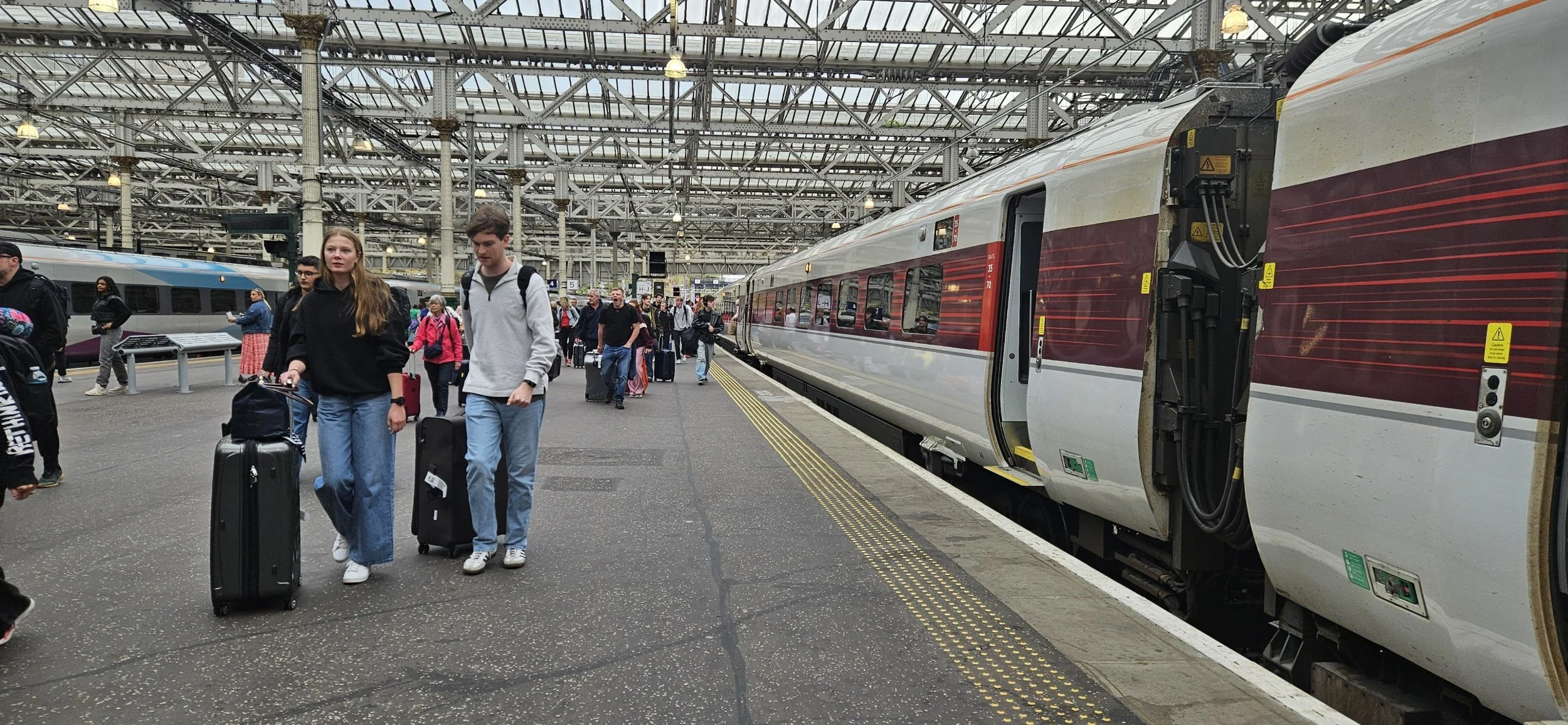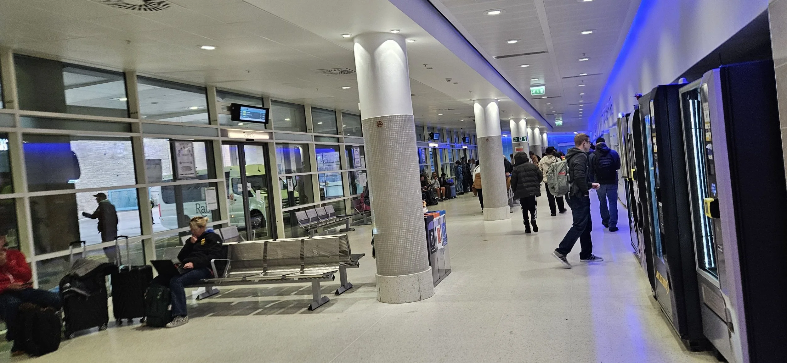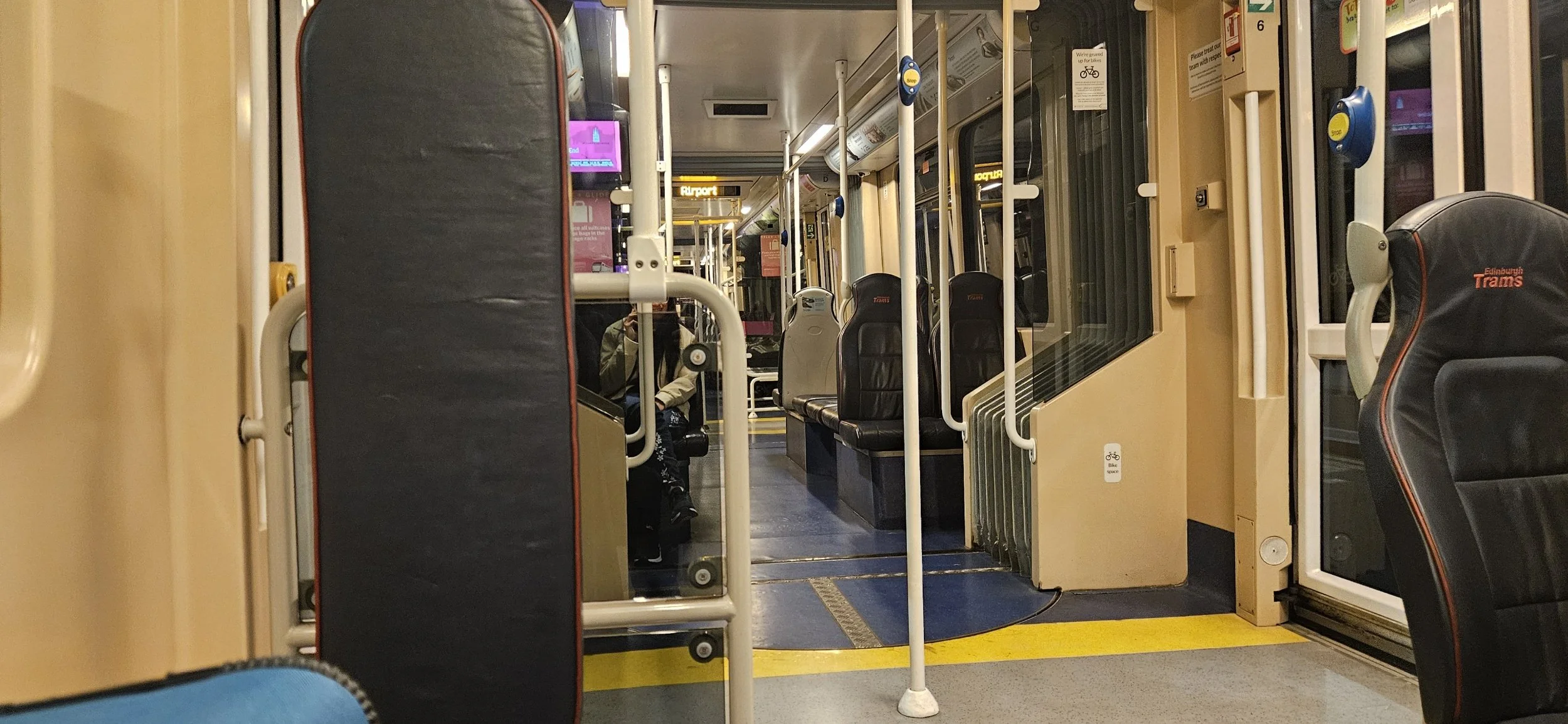 The tram arrived nearly empty. Forty-five minutes later the tram was full of travelers heading to the airport. The trip cost me a little under eight pounds.