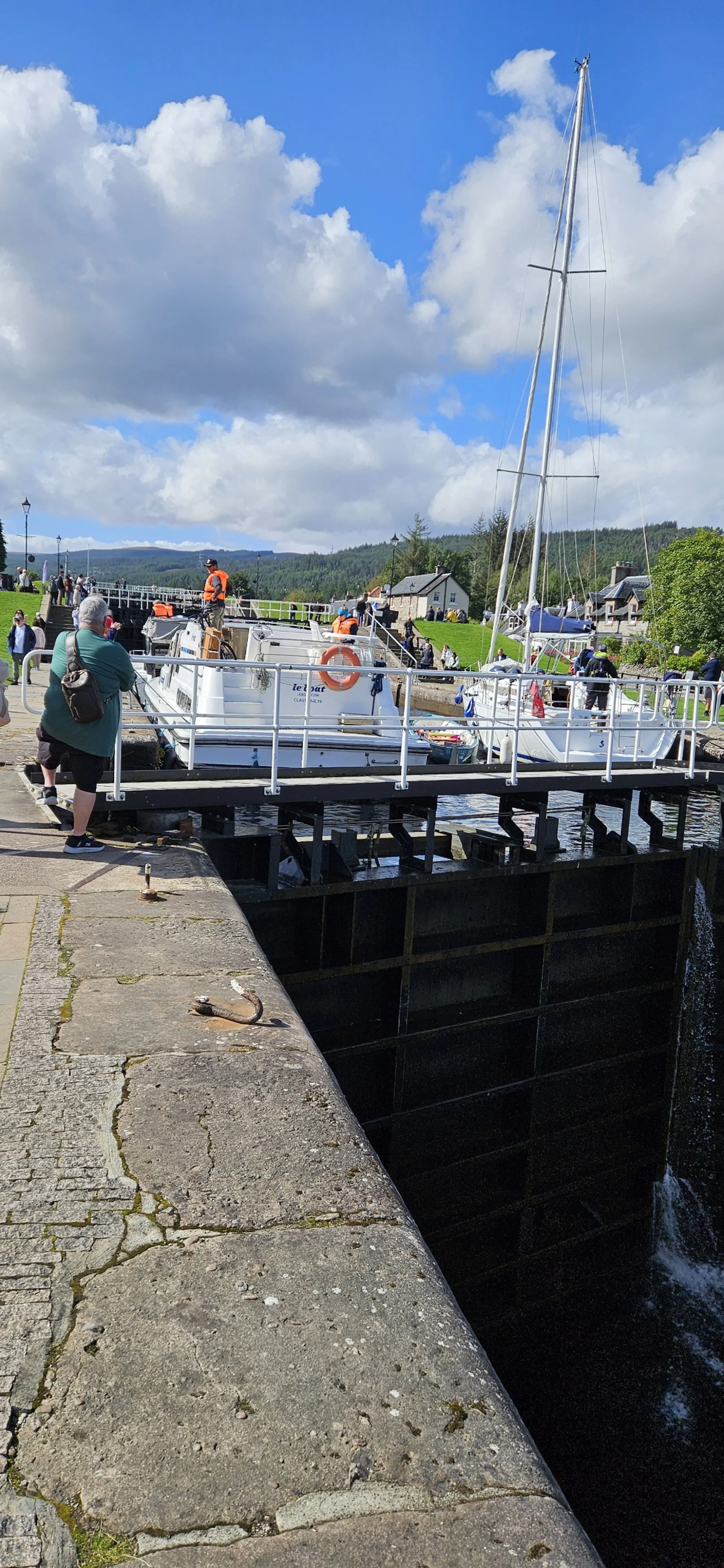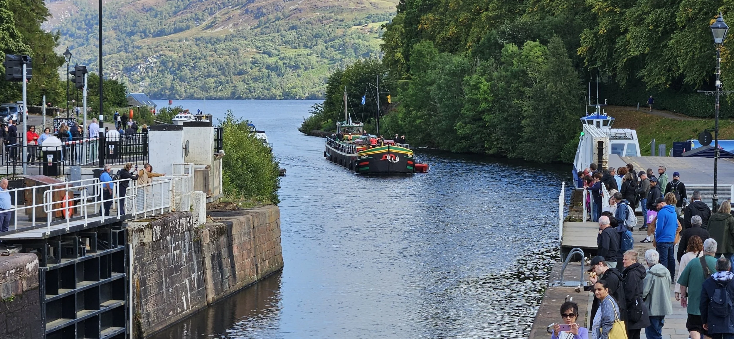These locks connect the four lochs across the Highlands area. Loch Ness accesses the North Sea and Loch Linnhe accesses the Atlantic Ocean. Through the locks and Lochs smaller vessels can avoid having to travel north around the top of Scotland. Glad you don't need keys for all that. (Dad joke)