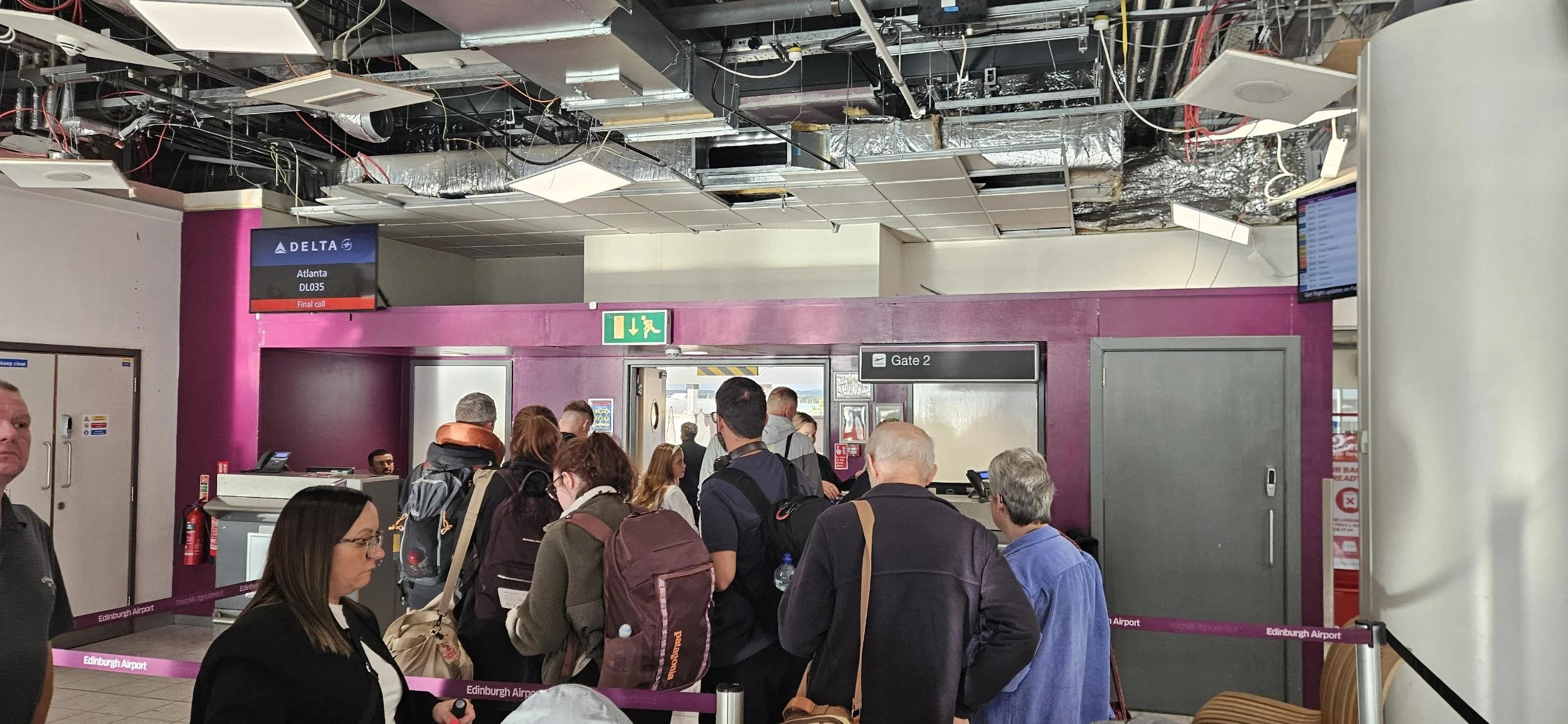 I was assigned a window seat for this flight as well. I’ve lucked out so far. One last plane ride after this one. The flight from Edinburgh to Atlanta is eight hours and thirty-four minutes. I’ll have a two and a half hour layover in Atlanta. All of which will be filled getting through customs and finding my way to the domestic terminals. We were delayed slightly to top off the fuel.