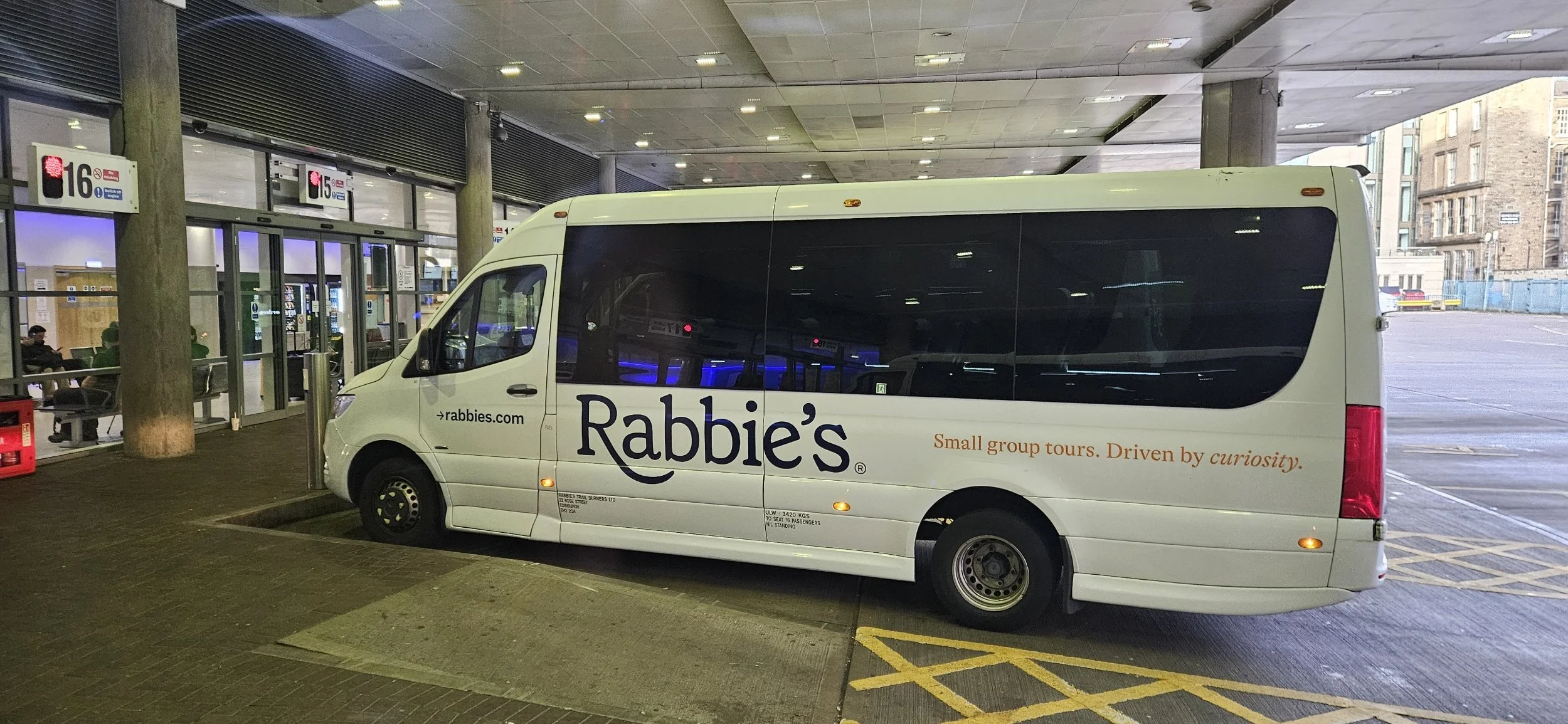 I checked in with the ladies of the tour company and was told to listen up for my bus drivers name to be called. His name is Duncan. The busses are very nice. Carry only sixteen people.