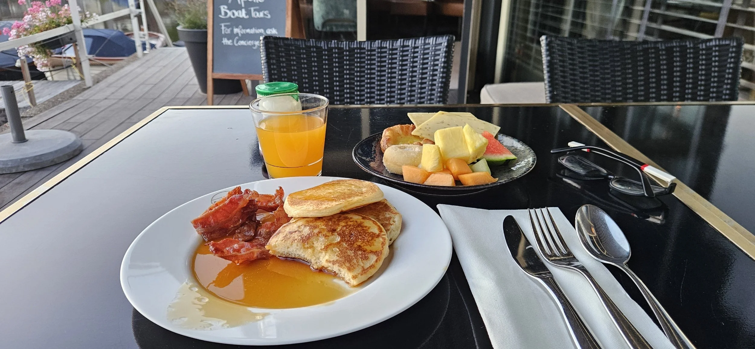 I was able to enjoy my breakfast out by the canal.