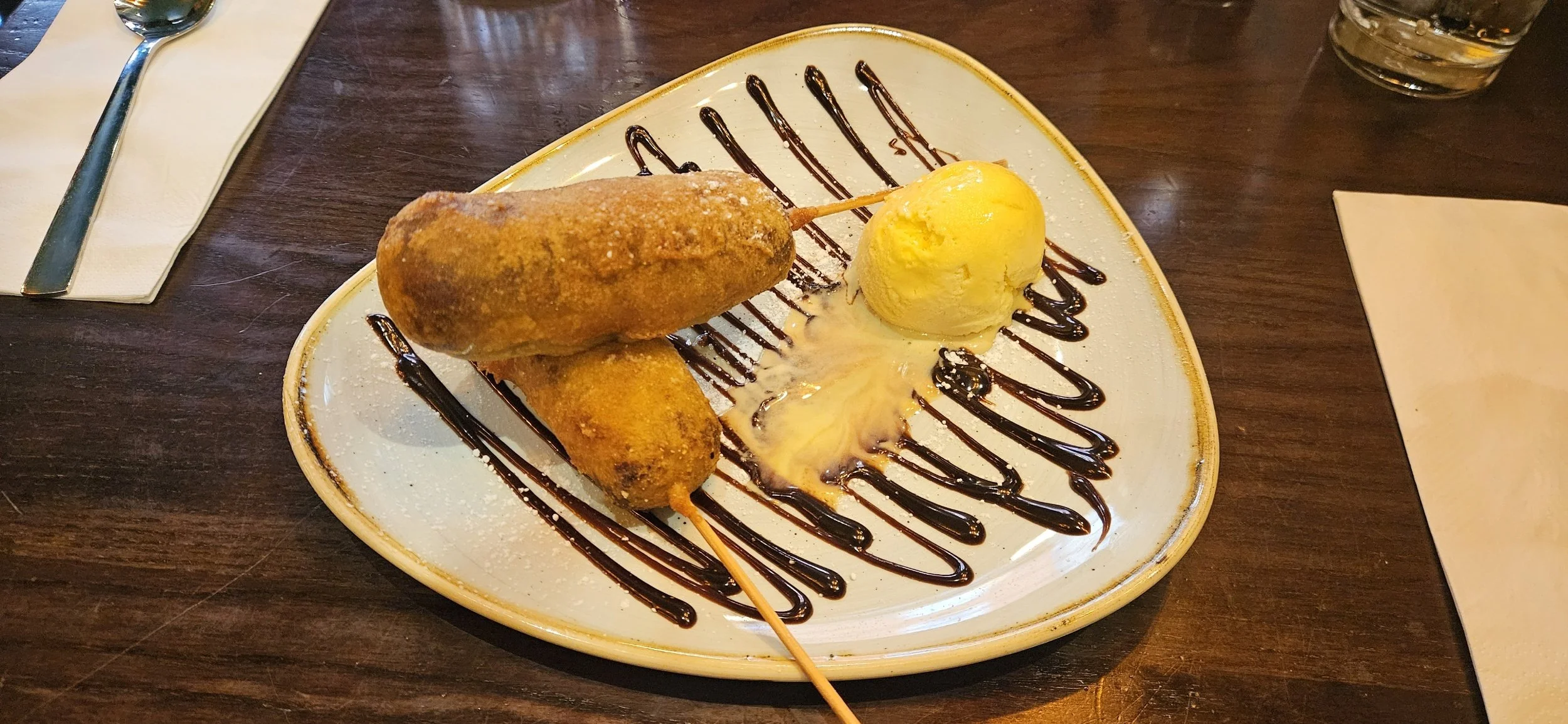 And for desert, fried Mars bars with vanilla ice cream. It definitely helped to cleanse the palate (had to look up the spelling for this one, another homophone).