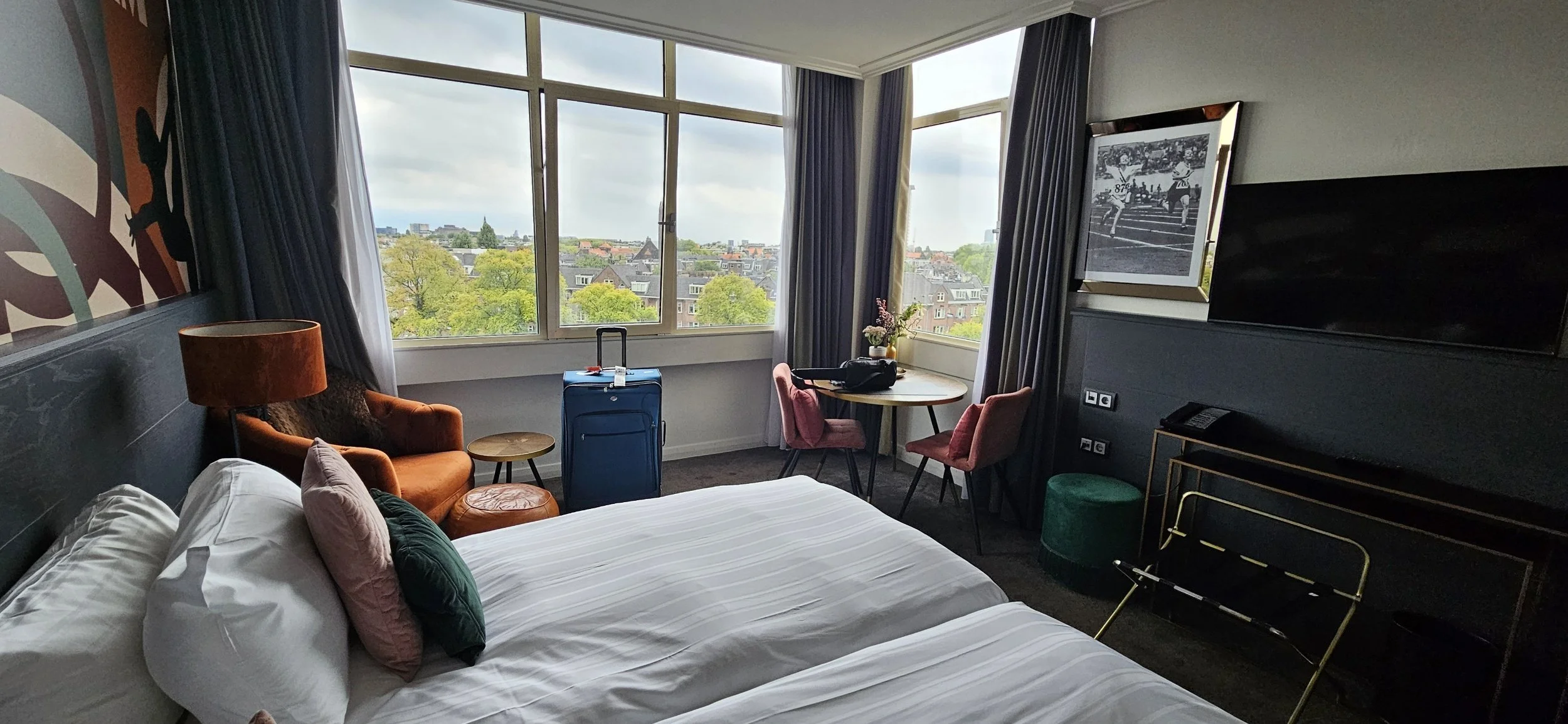 After finding my checked bag I looked for transportation to my hotel. I arrived 5 hours before check-in, so I wasn't I a huge hurry to get there. I Googled my hotel and looked at public transportation. Amsterdam is the model city for public transportation and biking. Unfortunately, I had some difficulties trying to figure out the difference between trams and trains and how to get the tickets. I looked at doing the bus, but the guy selling the tickets said I'd have to do a lot of walking with my huge suitcase. So I got a taxi. Realized my mistake right away, €54 by the time I arrived at my hotel.