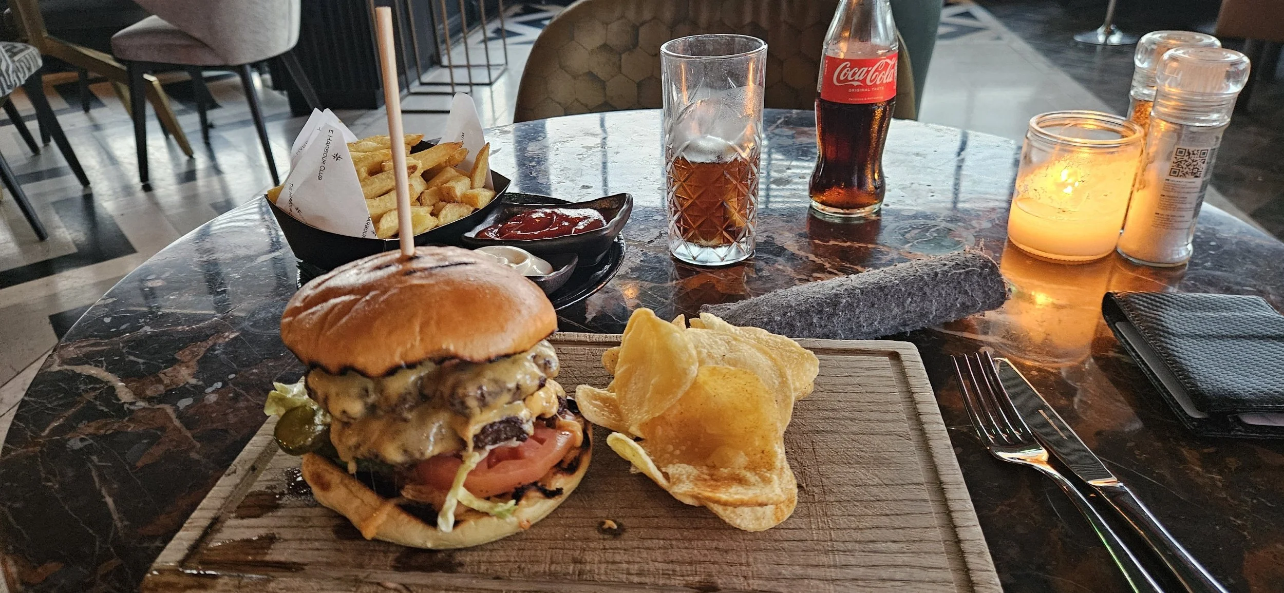 Well the serveester (waitress, see Duolingo taught me something) recommended the smash burger. Who was I to say any different. It was really good! A bit expensive, but my feet couldn't walk another step today.