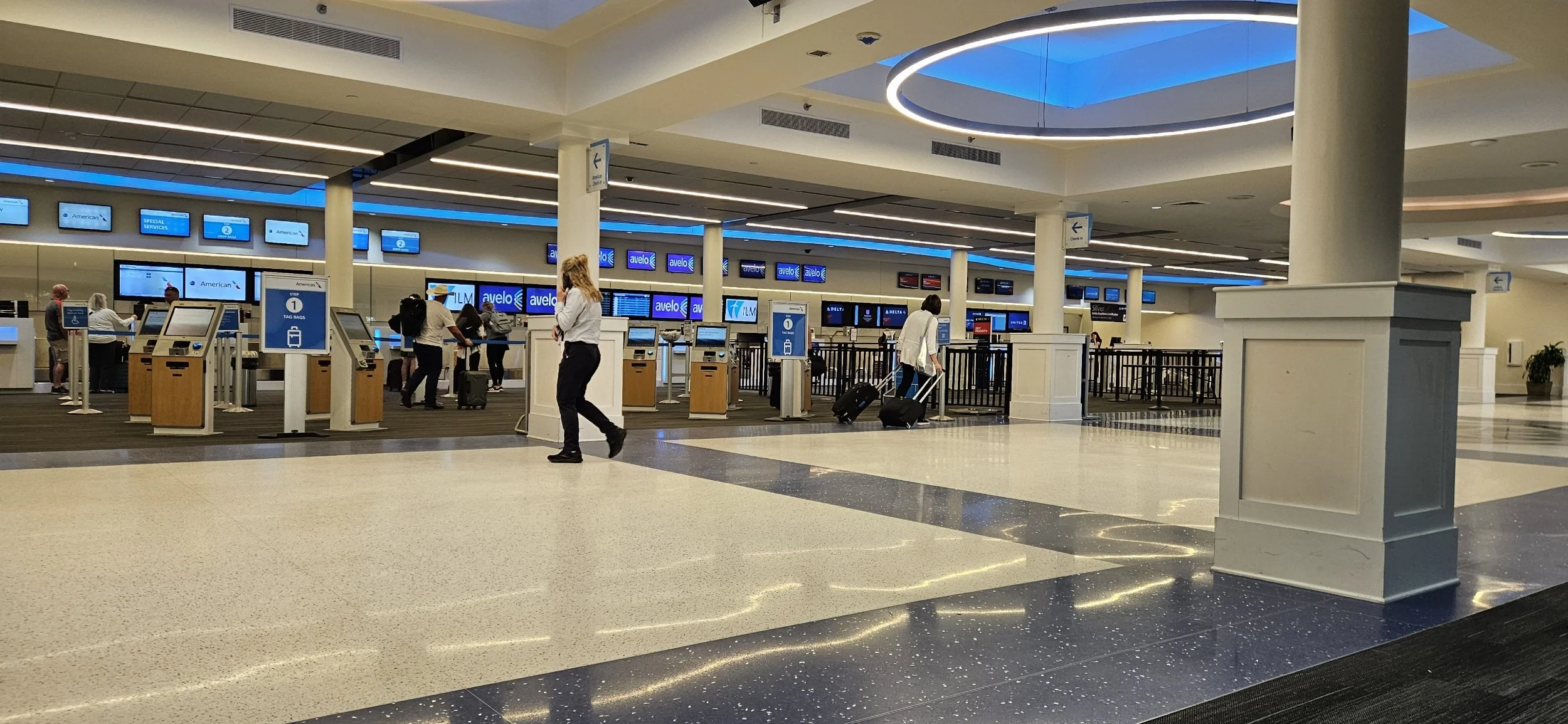 The new construction adds a bit of a walk from the drop off to check-in at the terminal.