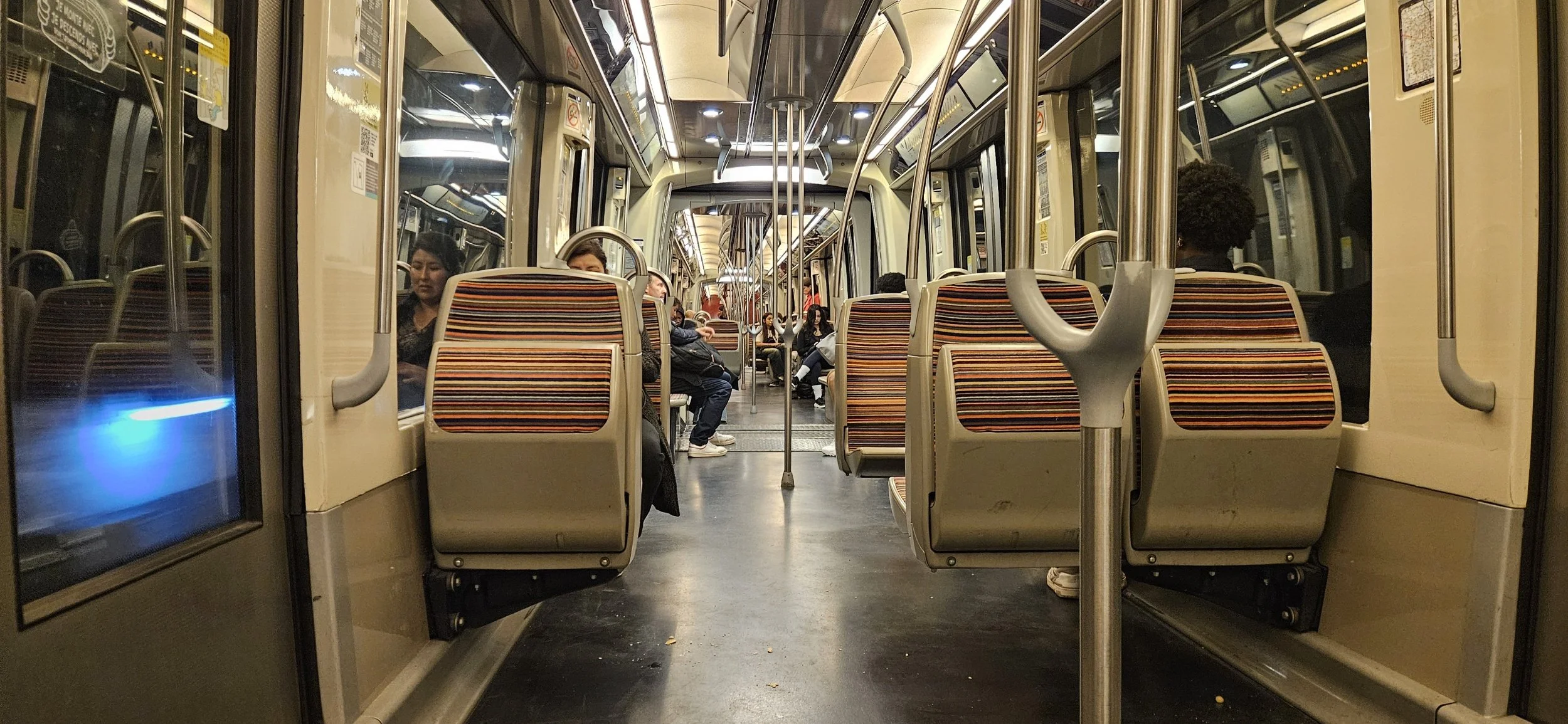 I paused for a moment to make sure I understood that I was going to the correct platform and headed in the correct direction. I only needed to go one stop to get to the transfer station. I lugged my suitcase down the stairs and noticed the the next train was in ten minutes. No problem still had plenty of time. The metro finally arrived and I got on trying not to knock other people over with my suitcase.